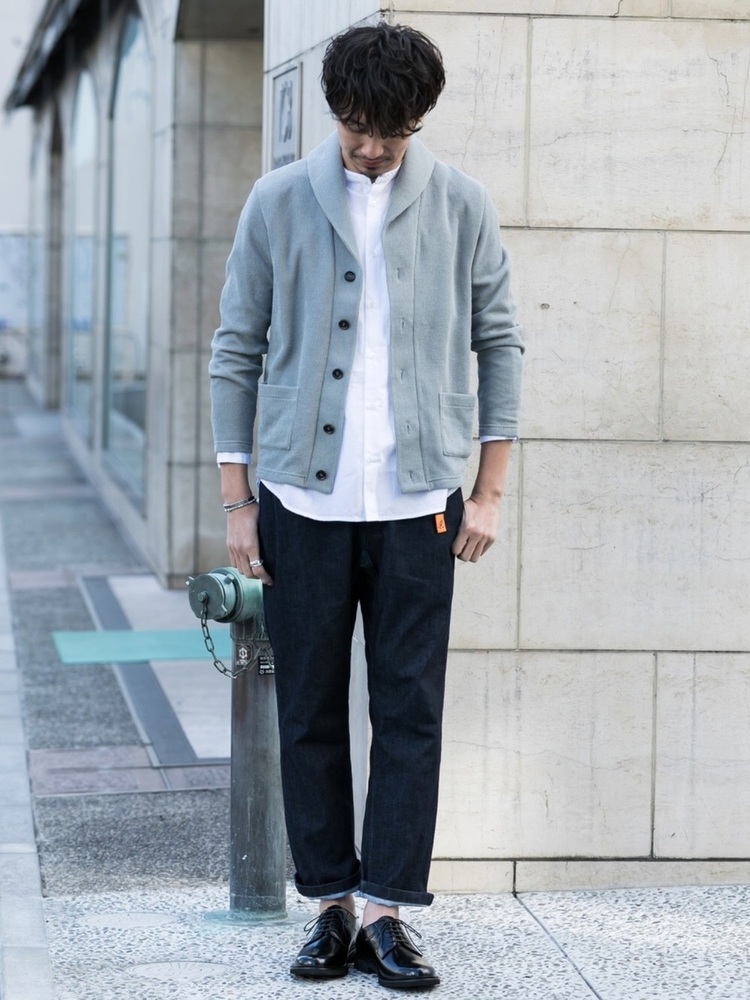 清潔感のあるニットカーディガンとシャツの組み合わせは好相性。こちらでは、シャツのアウターとしてニットカーディガンを取り入れたメンズコーデをご紹介します。