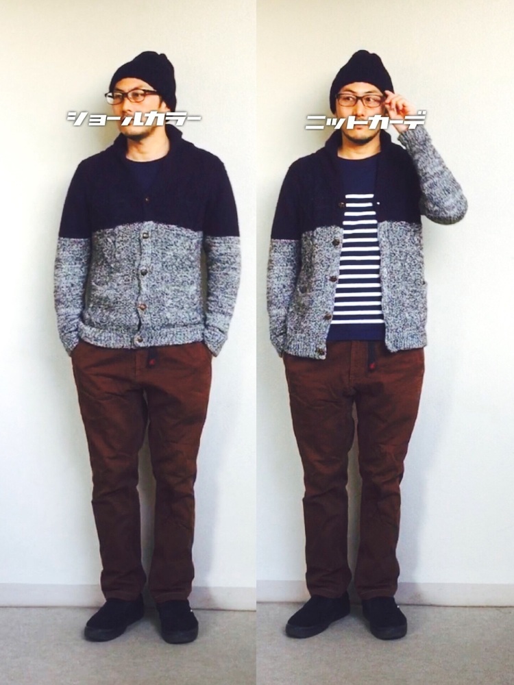 ニットカーディガンの色別メンズコーデ【ネイビー】