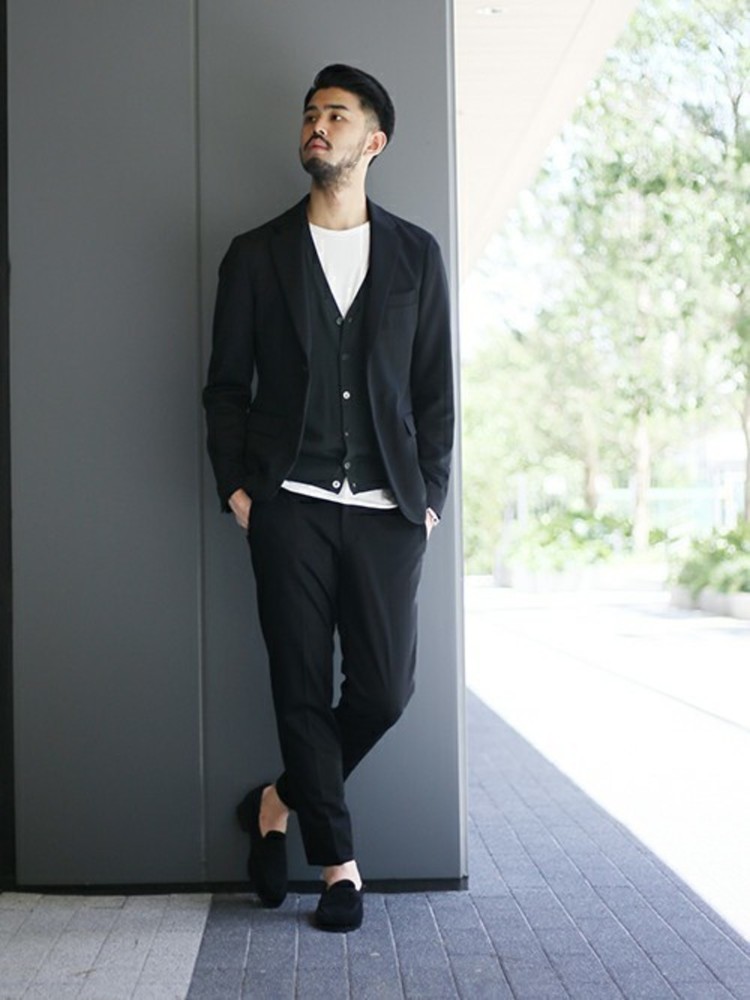 ニットカーディガンの色別メンズコーデ【ブラック】