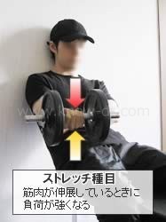ストレッチ種目とは筋肉が伸びているときに最も高い負荷がかかる筋トレ種目です。筋肉が伸び切ったときに負荷がかかるため、筋肉組織が損傷し超回復による筋肥大に効果的というメリットがあります。