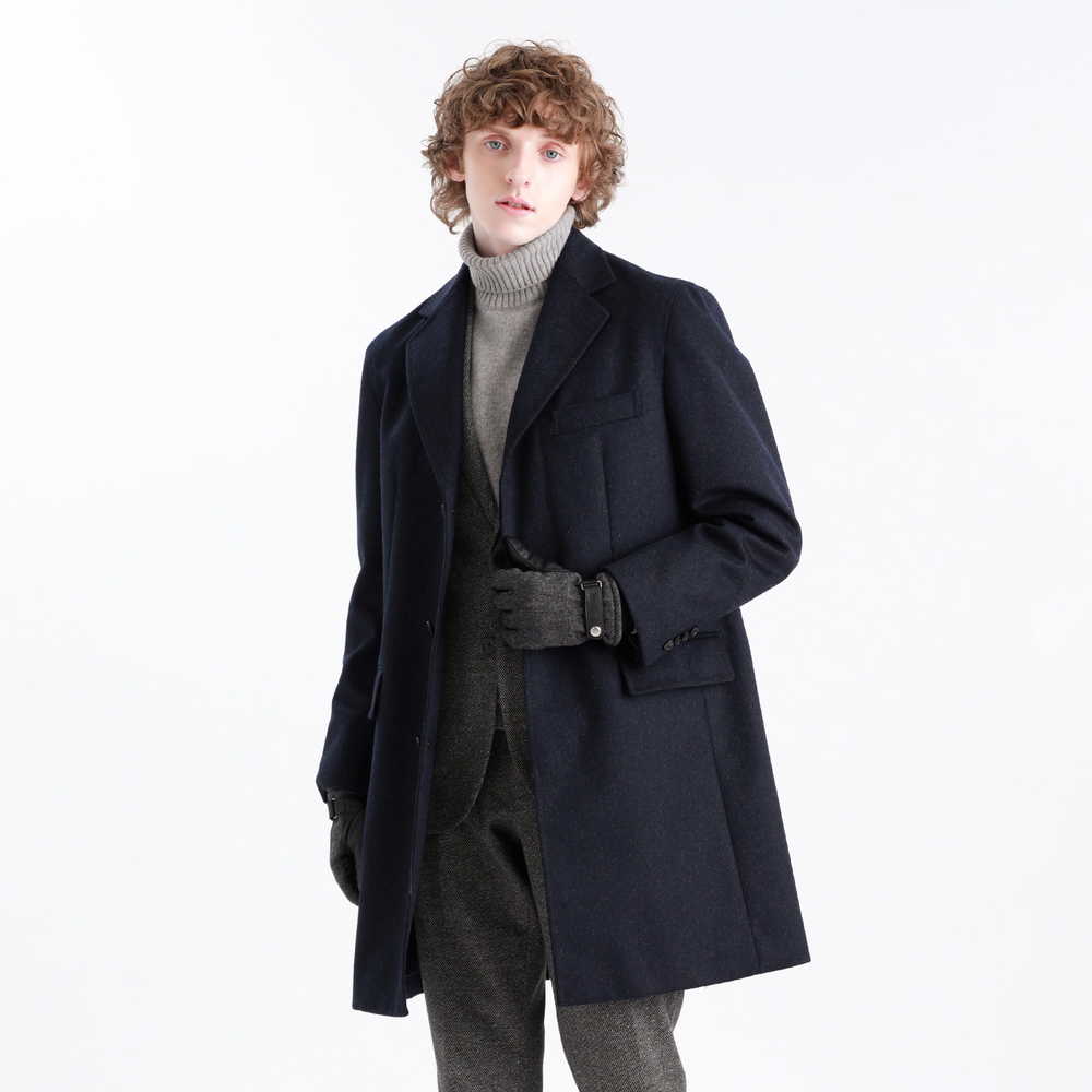 メルトン生地で作られたマッキントッシュフィロソフィーのコートです。生地を圧縮させて作られた生地で見た目以上の保温性を発揮します。バックを長めに設計されているためイギリス紳士のような印象を演出できます。