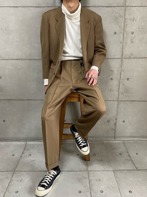 リラックス感のあるセットアップを探している方にはWYM LIDNMがおすすめ。ジャケットは肩をドロップさせ、パンツもゆとりのあるシルエットなのでスーツとは違い、リラックス感を出してイマドキなコーデに仕上げます。