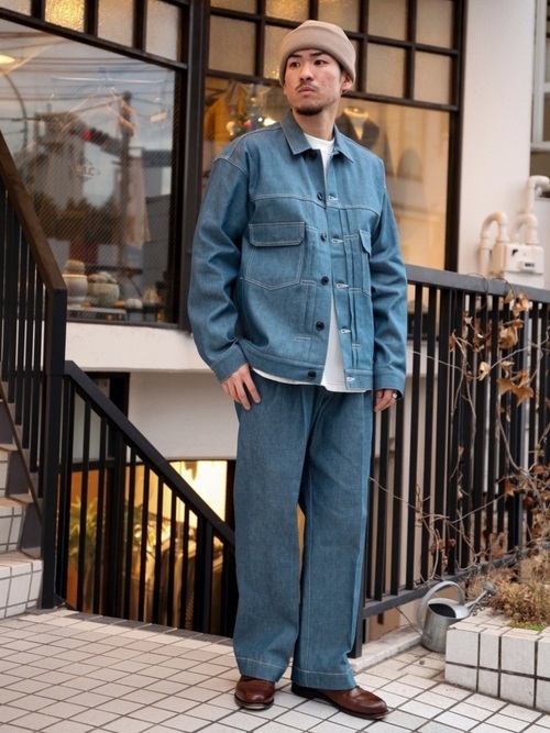 デニムジャケット×デニムワイドパンツ