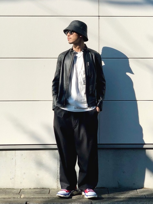ライダースジャケット×ワイドパンツ