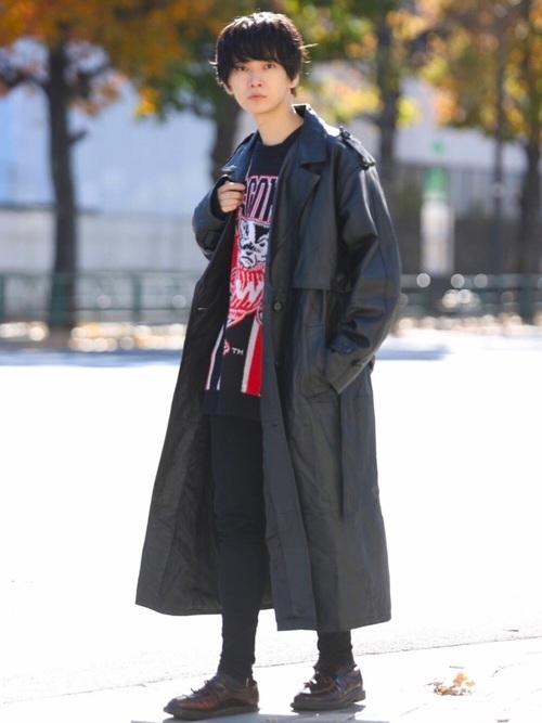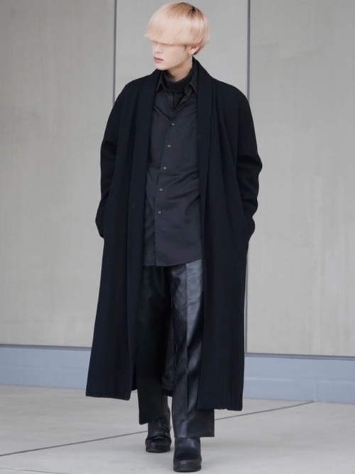 超ロングコートを使ったメンズコーデです。丈が長く、かかとに近いくらいの長さにすることで、大人のかっこよさを表現できます。黒カラーでよりかっこいいシルエットに見えるでしょう。