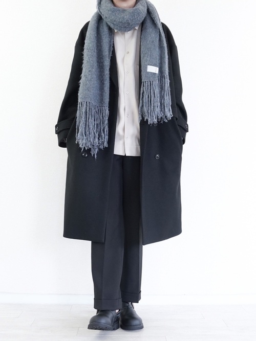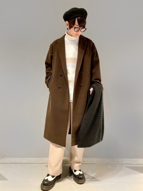 ジャーナル スタンダードは、人気のビッグシルエットのロングコートです。かなりワイドに作られているため、パンツもビッグシルエットを選べばかなり流行の着こなしが完成します。コートの丈は膝近くまでの長さに整えられており、よりビッグシルエットの印象を高めてくれます。