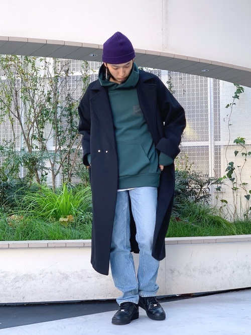 アニエスベーのロングコートは、価格帯に似合わずかなりしっかりとした作りになっています。また、ジャージ素材のような伸縮性がありますので、気持ちいい着こなしができます。股下はちょうど膝くらいの長さにセットされており、ロングコートらしいジェントルな着こなしにもマッチできるでしょう。