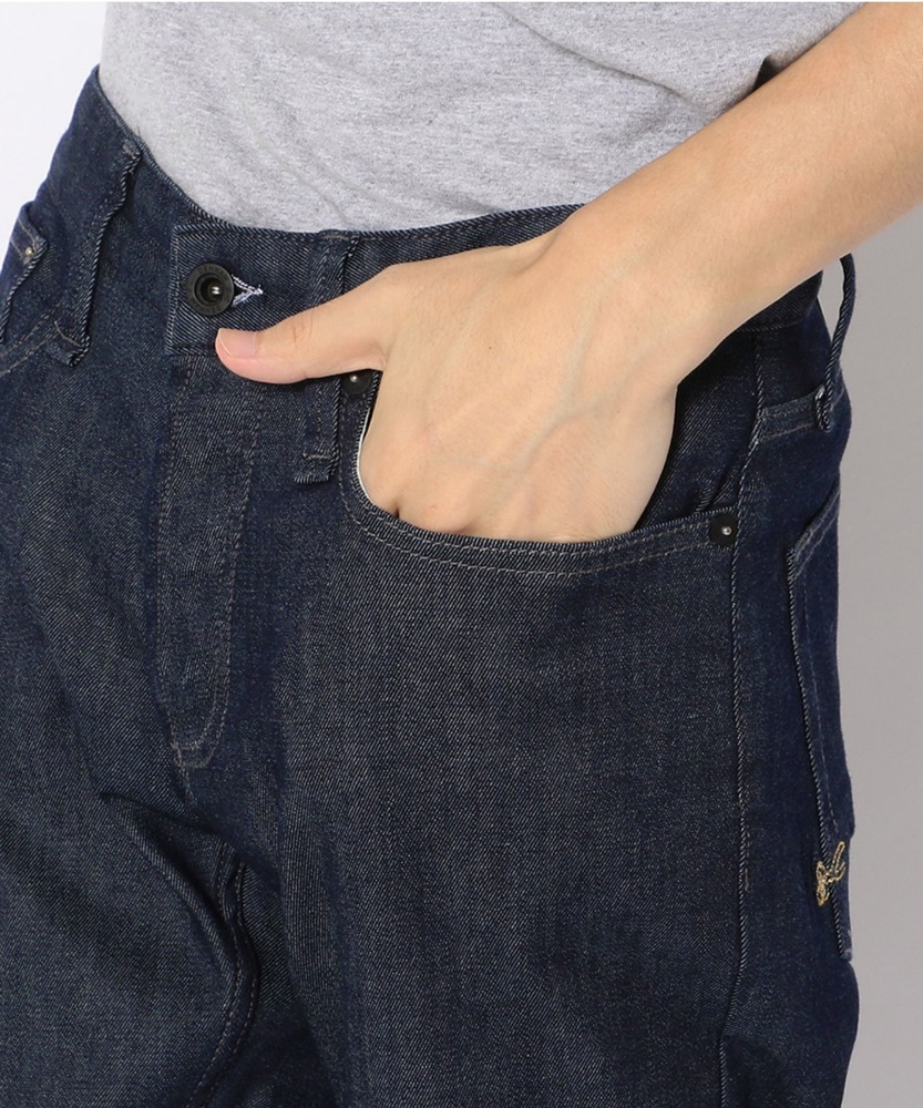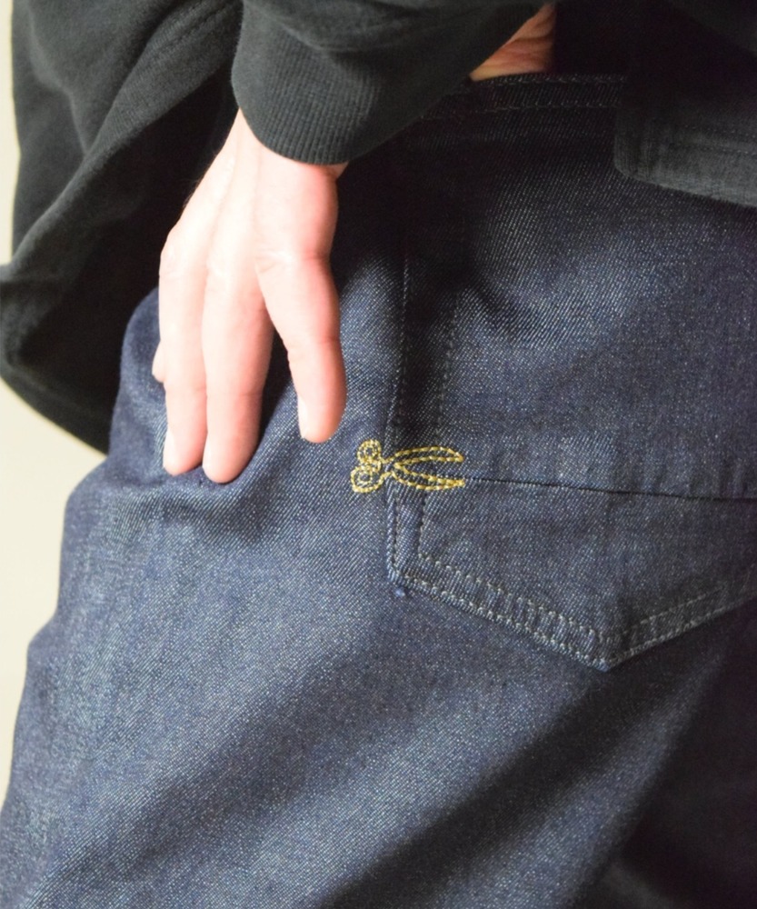 デンハムのジーンズは隠れた部分まで細かくデザインしていることで他ブランドとは一線を画しています。フロントボタンやバックポケットにブランドアイコンのはさみをデザインしたり、ポケットの裏地にまでおしゃれな柄をプリントしたりと、ディテールまでこだわっていることが強く感じられます。