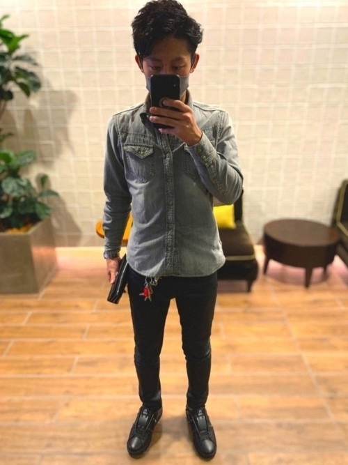 ジーンズにデニムシャツジャケットを合わせたデニムオンデニムのメンズコーデです。着用しているデンハムのジーンズは、ストレッチ性が高くヌメリのある質感。デニム感が薄いため、デニムオンデニムスタイルでもライトな印象にまとめられています。