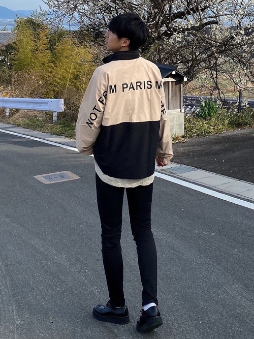 ナイロンジャケットに黒スキニーパンツを合わせることでカジュアル感が程よいコーデになります。ジャケットに黒が入っているため統一感があり、大半がベージュなので春らしさもある着こなしに。ナイロンジャケットの合わせ方に悩んでいる方は、黒スキニーと合わせると間違いないですよ。