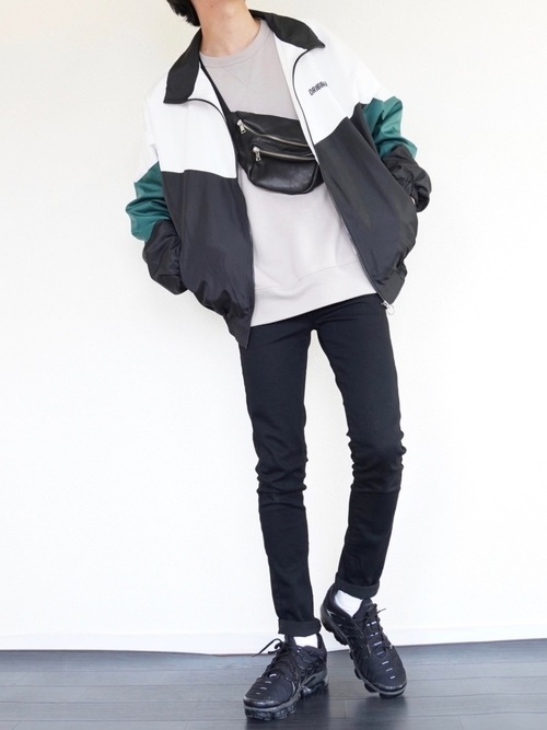 黒スキニーパンツ×スポーティーコーデ