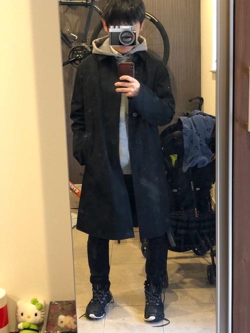 黒マウンテンパーカー×黒パンツ