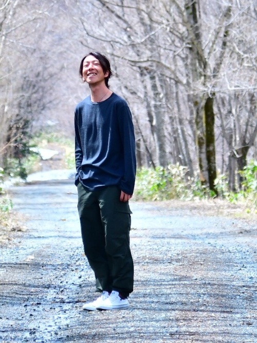 メリノウールカットソー×カーゴパンツ