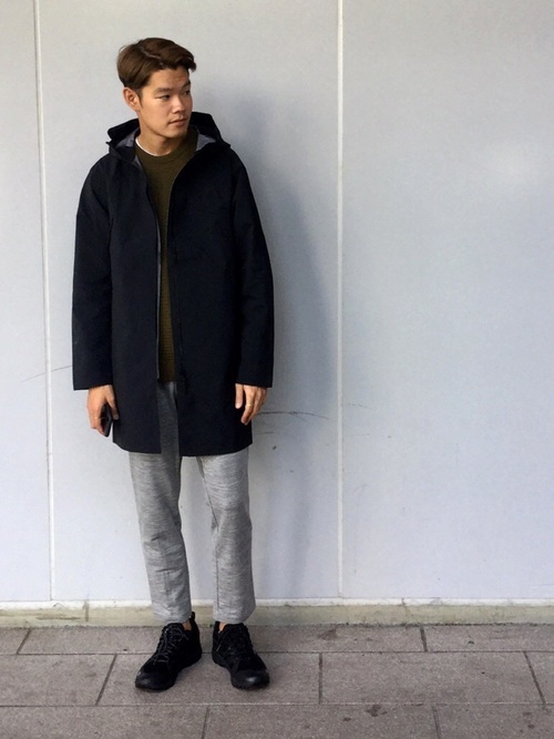 THE NORTH FACEのコートとアイスブレーカーのパンツのコーディネートです。コートのボリュームと人気のスリムパンツのシルエットがとてもいいバランスになっています。シンプルな中にもおしゃれを感じる組み合わせです。