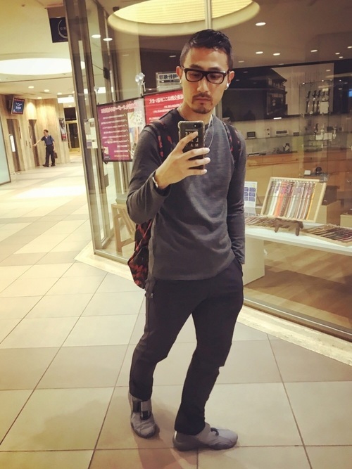 アイスブレーカーのアウターにUNIQLOのパーカーを合わせたコーディネートです。全体的に黒でまとめたコーディネートですが、インナーに使ったパーカーの鮮やかなブルーがアクセントになっています。細身のラインもとても綺麗ですね。