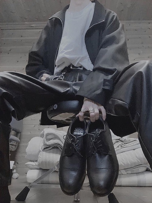 ミニマルで汎用性の高いリバーシブルアウターと、ツイード素材のセミワイドパンツのきれいめコーデです。シルエットがすとんと落ちるようにまとまっているのでスタイルが良く見えます。アウターとパンツをブラックで統一しているので、男らしくてかっこいいです。