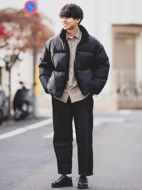 リバーシブルダウンジャケット×セミワイドパンツ