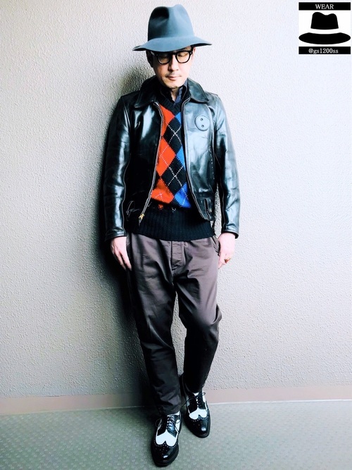ライダースジャケット×アーガイルニット
