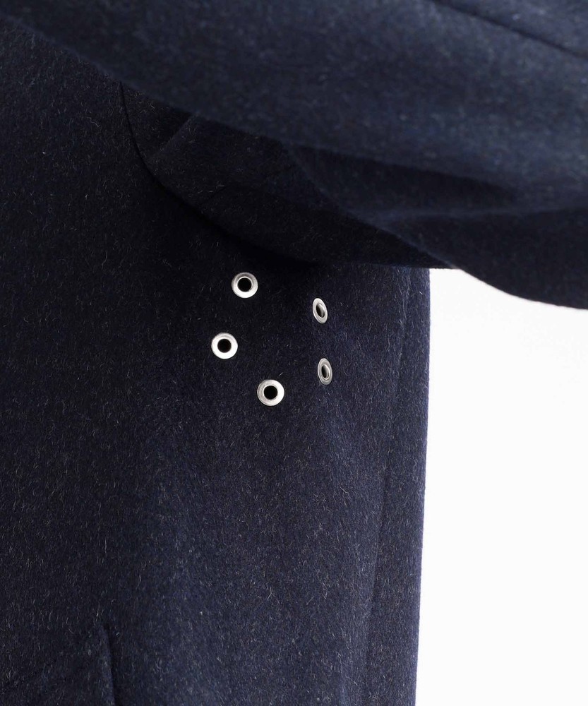 マッキントッシュクロスや縫製部分のマスキング加工によって、高い防水性を誇るマッキントッシュコートですが、一方で問題となってくるのが着用中の「蒸れ」。そこで注目したのがベンチレーション機能です。マッキントッシュでは脇の下に5つの穴を開けることで、ファッション性も確保しつつ、高い透湿性も叶えています。