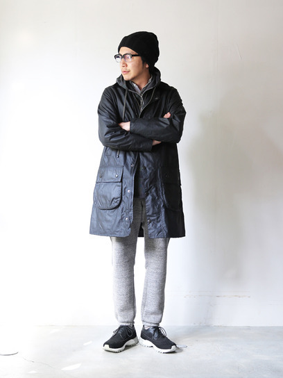 ボーダーは膝上丈のロングコートなので、ビデイルやビューフォートなどの他のモデルに比べて着こなしがクラシカルな印象になります。また防風・防水でロング丈なので、スーツの上からレインコートとして着ることもできます。ビジネスシーンからシティウェアまで幅広い着こなしができるのが特徴です。