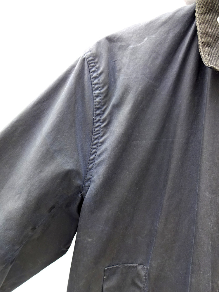 バブアーの代表作ビデイルを始め多くのモデルがラグランスリーブを採用している中、ボーダーはセットインスリーブになります。セットインスリーブの特徴は、肩から袖まわりにかけてラインがすっきりしているので野暮ったくなりません。細身な方でもきれいな着こなしができます。