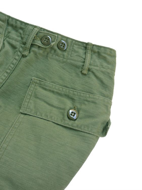 ガンホーの定番と言えるファティーグパンツ『キャンプファティーグトラウザー』。米軍で作業用に使用されていた程、丈夫で素朴な生地が特徴です。シンプルなデティール、ストレートなシルエットで非常に使いやすいデザインのファティーグパンツです。nnコットンサテンで軽い履き心地、動きやすいファティーグパンツは春夏を中心に活躍するでしょう。