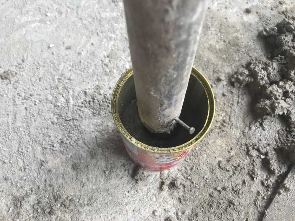 ③空き缶にコンクリートを半分流し込んで鉄棒を差し込む