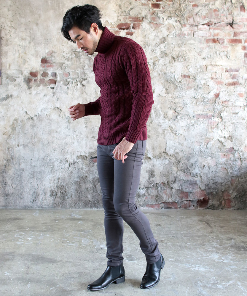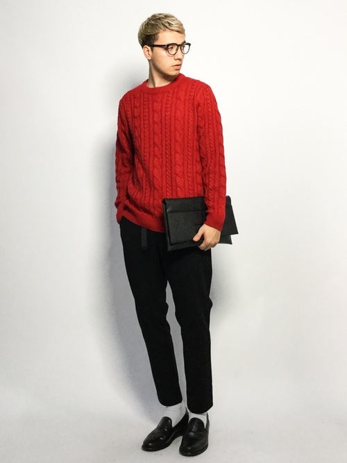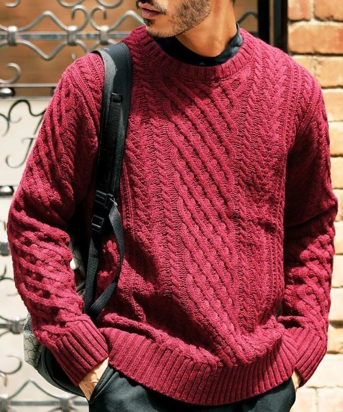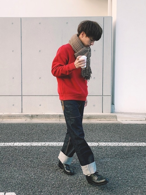 ここからは、冬向けの赤ニットのメンズコーデを紹介していきます。冬場は防寒性の高い厚手のニットが大活躍します。