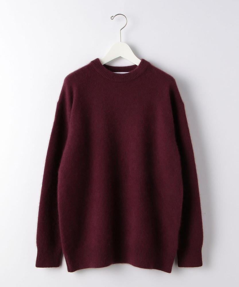アクリル・ポリエステル・ポリウレタンの3種混合の糸でウールの風合いを表現したニットセーター。ふわふわと優しい肌触りで、ニット特有のチクチクとした肌触りを感じさせません。使いやすいボルドー色なので着回し力も抜群。また、薄手生地でインナーとして着込みやすいのも嬉しいポイントです。