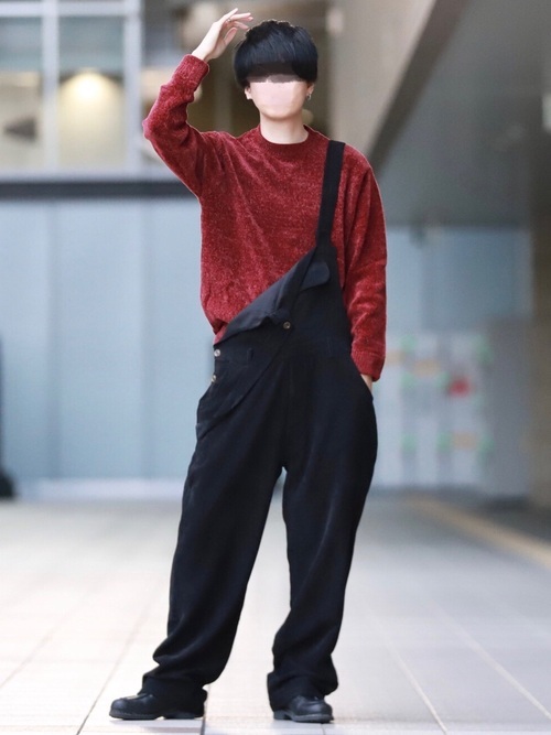赤ニット×オーバーオールは学生に人気のおしゃれコーディネート。トレンドを意識してゆったりサイズのオーバーオールを選ぶのがポイントです。ボルドー×ブラックは大人っぽい印象を与えられる定番の組み合わせなので、色の組み合わせに迷ったときに真似してみましょう。
