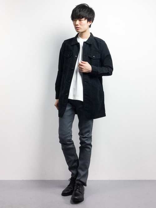 黒Tシャツ×黒シャツレイヤード