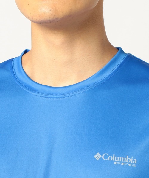 冷却効果機能が長時間継続する、オムニフリーズゼロ素材を採用したクルーネックTシャツです。暑い夏にも涼しく感じられ、紫外線カット効果もあるため野外イベントなどにもおすすめです。サラサラの気持ちのいい肌触りで、真夏に大活躍。nn胸元のポケットがコロンビアらしいデザインで、おしゃれに仕上がっています。全体的にシンプルなデザインなのでレイヤードもしやすく、真夏だけでなくオールシーズン使えるアイテムとなっています。
