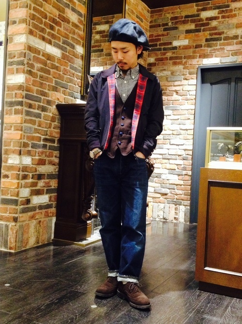 こちらは定番のG9の裏地を変えた別注アイテムです。本来のものは赤のタータンチェックなのですが、こちらはブラックに変更しています。メンズライクなかっこいいアイテムです。