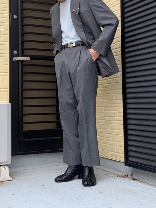 スーツスタイルにマルジェラの足袋ブーツを合わせているこちらのコーデ。足袋ブーツはオールレザーが施されているので上品感を演出することができます。フォーマルなスーツと足袋ブーツを合わせることによって、エッジの効いた着こなしに早変わり。セットアップに単調なブーツの着こなしに飽きた方にはおすすめのコーデです。