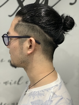 個性的なロン毛のツーブロックヘアです。高め位置に、お団子(マンバン)を作っているのもキマってますね。