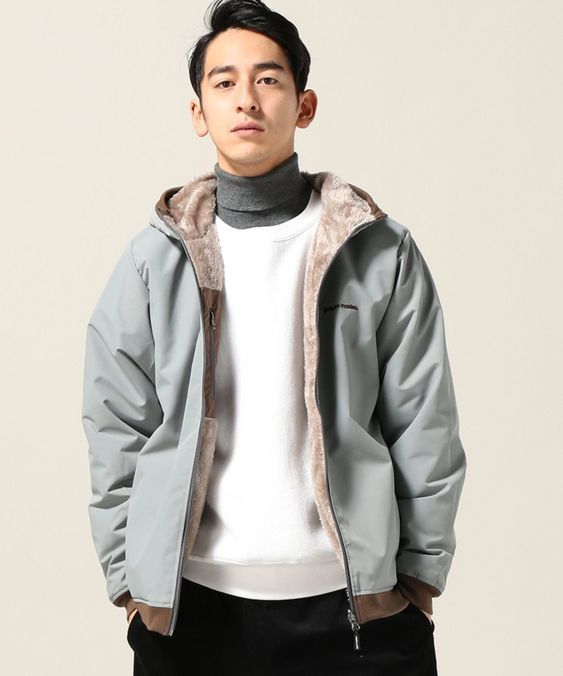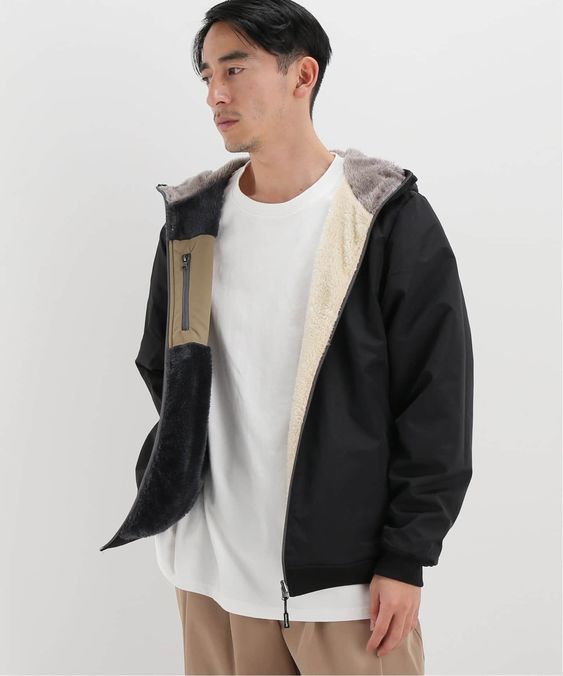 着回し力や機能性も抜群のマウンテンジャケットです。表面は厚手のボア、裏面はしっかりとしたナイロン素材のリバーシブル仕様。表も裏も全く表情が違うので、その日のコーデに合わせて選ぶことができます。表面、裏面どちらもトレンドライクなデザインなので、これを1着持っているだけでスタイリングの幅がグッと広がりますね。nnまた、フロントがジップとボタンのダブル構造になっているので風の侵入も防ぎ、防寒機能も抜群。そしてなんとフードは襟元に収納することができるので、すっきりとした着こなしを叶えつつ、さらに着回しの幅を広げてくれます。アウトドアシーンではもちろんですが、タウンユースとしても大活躍間違いなしのアイテムです。