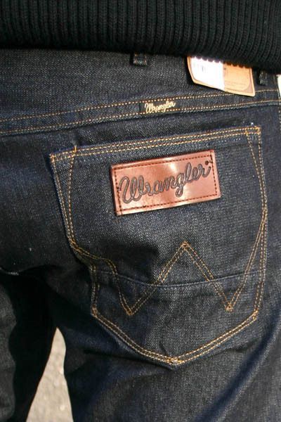 ラングラーでは素材にもこだわった製品づくりをしています。バックポケットの上のレザーパッチを本革、コットンを遺伝子組み換えでない、GMOフリー(遺伝子組み換えでない)のナチュラルコットンを使用しているそうです。