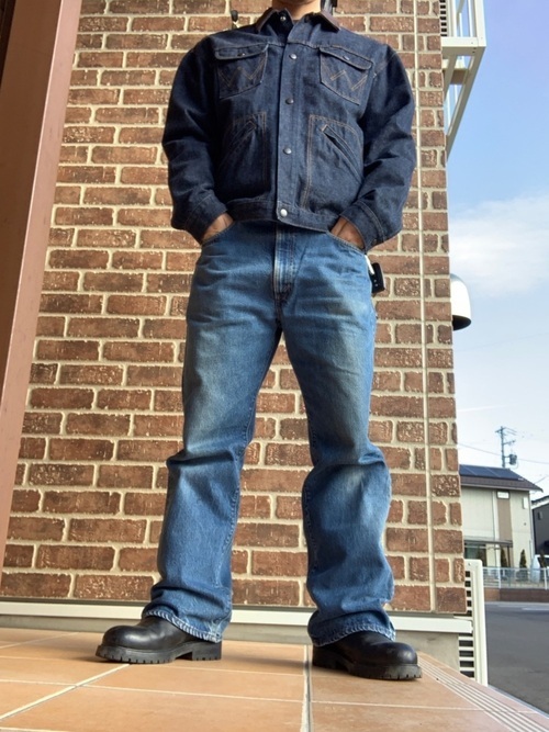 こちらは11MWのジッパーフライ版、11MWZの復刻版です。当時の特徴だった、赤のラングラーロゴのトップボタンや刺繍のレーヨンネームなど細部にまでこだわって再現しています。nnこのジーンズも生デニムを採用しているので、自分だけの色落ちの一本を作ることが可能です。太すぎず、細すぎず、ちょうどいいサイズ感のストレートジーンズです。ブーツなどを脱ぐときにちょうど良い裾のサイズになっています。