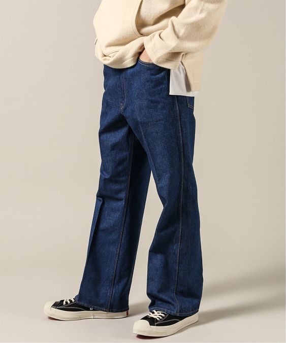 ウエストオーバーオールズのジーンズは足が長く見えると評判です。理由は、こだわりぬいたシルエットにあります。一般的なパンツは膝付近から裾に向かってフレアになったり絞ったりして変化を付けます。