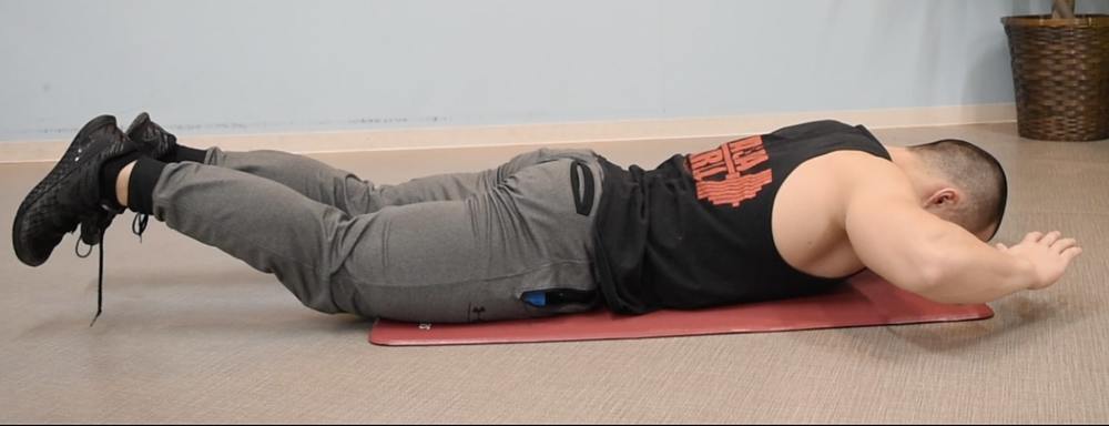 まずは画像のように床やベンチの上でうつ伏せの状態で寝ます。
