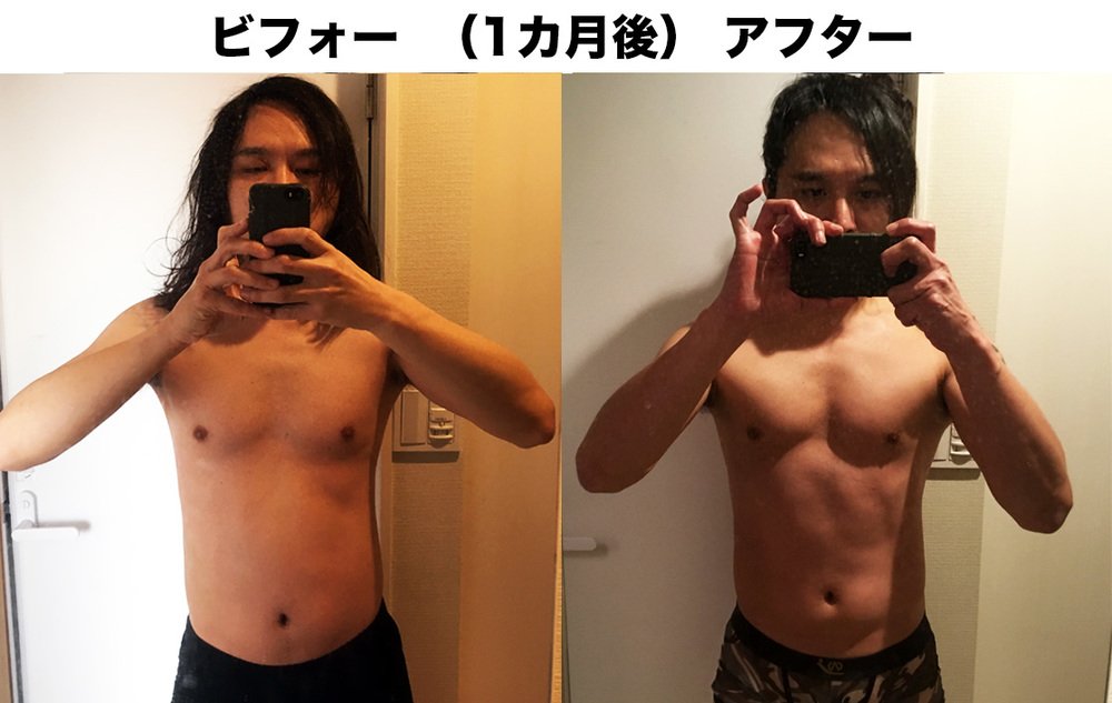 写真は僕が1ヶ月間、腹筋ローラーに取り組んだ時のビフォーアフターです(左→右)
