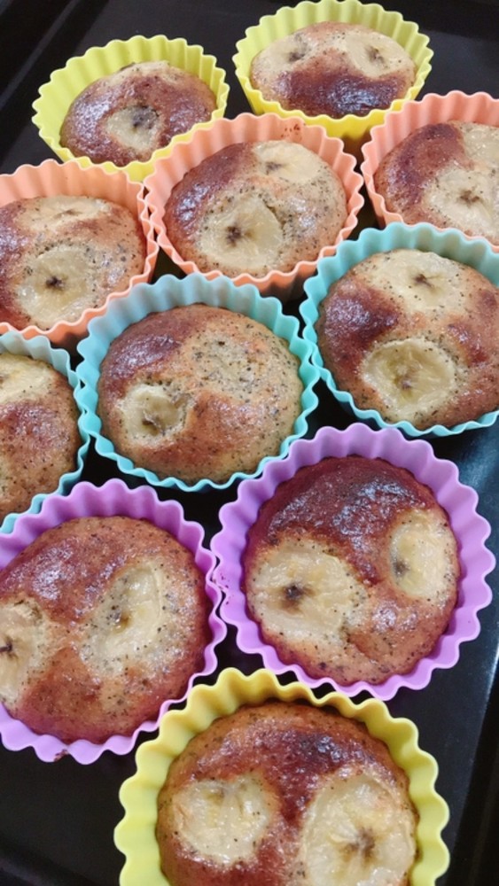 おやつにもぴったりな小さなマフィンができます。バナナと紅茶の風味が上品で腹持ちも良いのが特徴です。トッピングするアイテムを変えてアレンジしても楽しいでしょう。