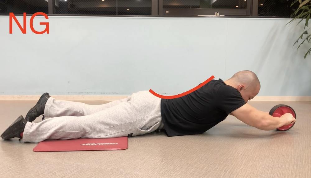 腹筋ローラーができないのは、体を伸ばしたときに腰が反った状態になってしまっている方が筋トレ初心者には多くいます。腹筋ローラーをするときには、常に体がまっすぐな状態をキープすることが重要です。腰が反っているということは、腹直筋が完全に伸び切って負荷に耐えられていないということにつながります。