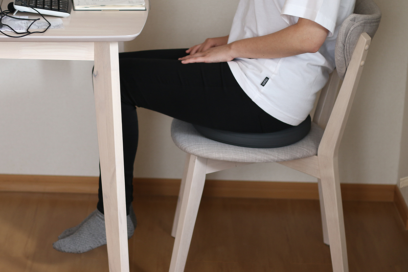 ここからは、座るだけでお腹痩せや姿勢の改善などに効果が期待できる、バランスディスクの使い方について見ていきましょう。バランスディスクは椅子・床のどちらにおいても使用できるので、それぞれの使い方を記載しています。
