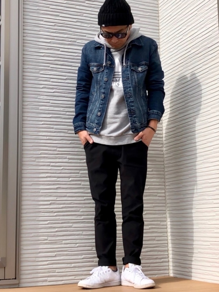 ブランドもののパーカーを着用することで、ストリートな雰囲気に仕上げた秋のメンズコーデです。ニット帽やサングラスなどの小物アイテムで、ダンディなかっこいいイメージも引き出せます。黒のボトムスを着用することで足長効果を演出しましょう。
