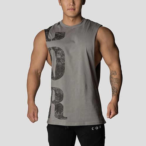 コットン100%素材で肌触りの良い生地なので着心地抜群のShirt。腕周りのトレーニングをするときに最適です。アームホールは動きやすさを追求した大き目の開きでシームレスなので、鍛えあげられた腕が引き立ちます。色はダークグレイとホワイトから、サイズはS、M、Lから選べます。大きな『COR』のロゴが印象的なデザインのタンクです。