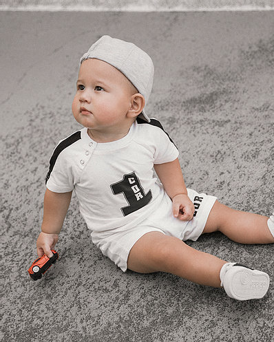 赤ちゃんのデリケートな肌にもソフトで伸縮性の良い素材です。色はホワイト、ブラックから、サイズは60.70.80.から選べます。着替え易さへの配慮で首元にスナップボタンがついています。『COR』のロゴがキュートで可愛らしいデザインです。