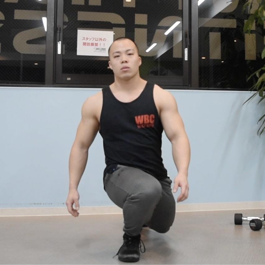 この種目は筋トレというよりストレッチです。重量を持って行うと膝が内側に入ることが多いので、重量を扱わずに行いましょう。