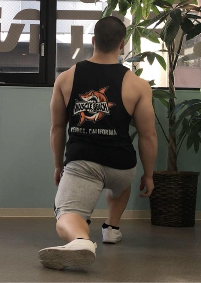 上でも解説したとおり、バックランジを行うときは、両膝関節が90度で、上体は直立のままをキープするようにしましょう。