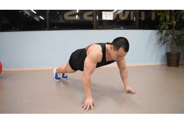 ①基本的な腕立て伏せの姿勢になる